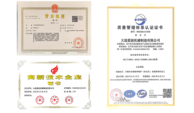 大連藍波機械制造有限公司成立于2007年,注冊資本6000萬元,固定資產4000萬元,是原國家鐵道部2007年批準的鐵路內燃機車機體大修定點企業。具備完整的質量保證體系并通過了《ISO9001質量管理體系》認證。企業申請實用新型專利45余項,并于2019年遼寧省大連市科學技術局頒發大連藍波機械制造有限公司高新技術企業榮譽。公司成立以來,先后承接了哈爾濱、沈陽等10個鐵路局及中車大連、沈陽等八個機車制造(大修)工廠的內燃機車機體大修業務和治金、煤礦、機車車輛制造(檢修)工廠、工程局等各行業自備內燃機車的各種修程檢修業務。